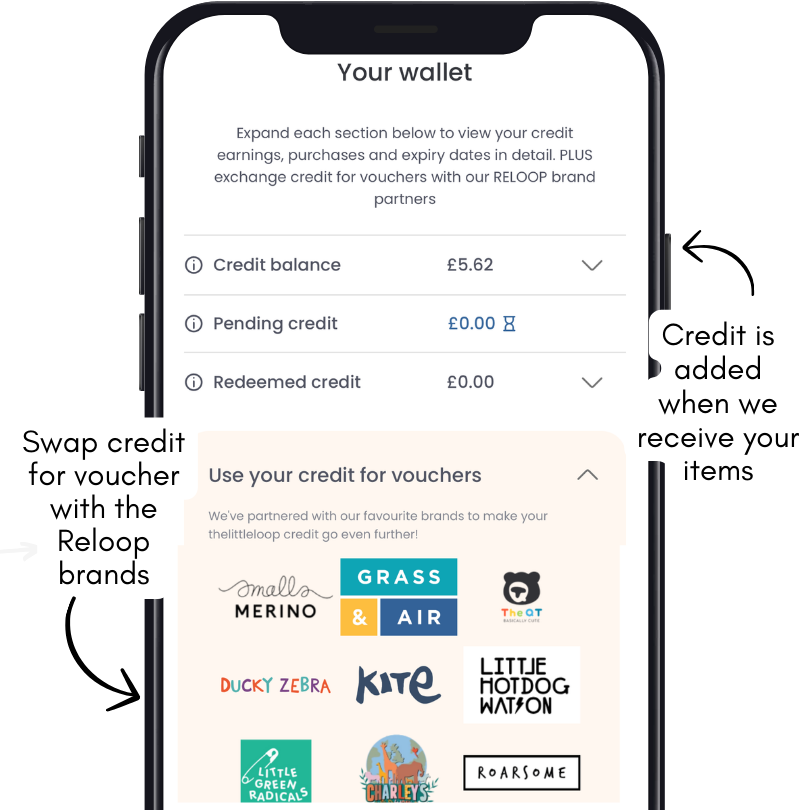 Every item traded earns you 30% of its resale value as credit. Trade-in credit can be spent directly on thelittleloop’s marketplace or converted into vouchers with exclusive partner brands.