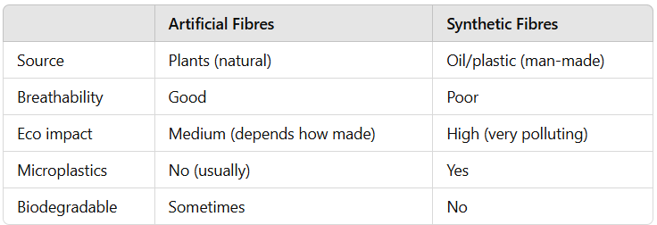 If you’re choosing between artificial and synthetic fibres, artificial ones (like viscose or Lyocell) are the less bad, especially when made responsibly.